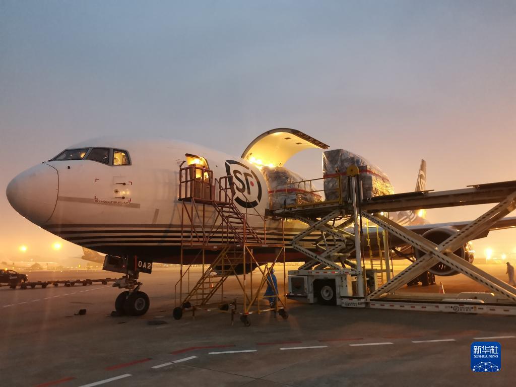 一架載有45噸物資的順豐航空貨運包機從深圳寶安國際機場飛往香港,深港兩地貨運包機航線正式開通(2022年3月19日攝)。新華社發(fā)