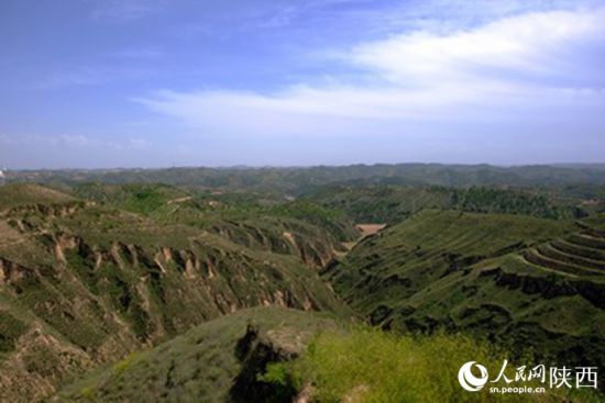 初夏時節,郝家橋的山峁間披上了綠裝。人民網 吳超攝