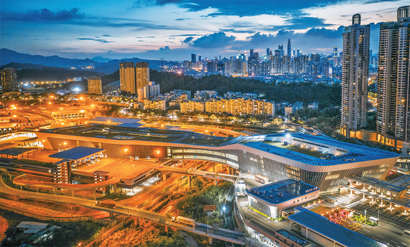 作為構(gòu)筑深港跨境交通“東進(jìn)東出、西進(jìn)西出”大通關(guān)格局的重要一極,深圳東部過境高速公路將為服務(wù)粵港澳大灣區(qū)建設(shè)提供一條新的“黃金通道”。圖為深圳東部過境高速公路起點(diǎn)蓮塘口岸夜景。 新華社發(fā) 深圳市口岸辦供圖