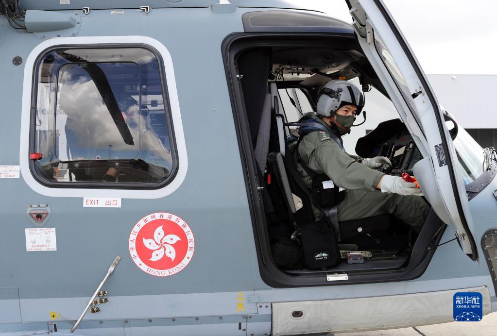 香港特區(qū)政府飛行服務(wù)隊(duì)領(lǐng)航機(jī)長(zhǎng)葉偉雄準(zhǔn)備訓(xùn)練(6月23日攝)。新華社記者 李鋼 攝
