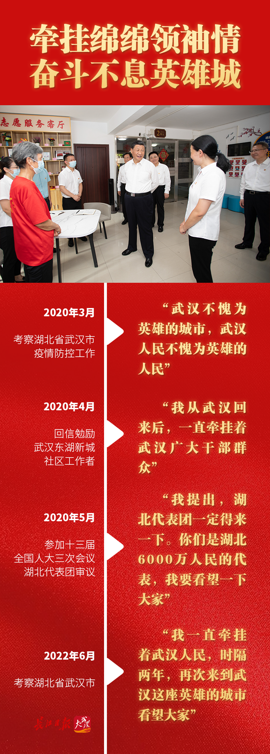 前幾天,6月28日,習近平總書記再次來到湖北武漢,“我一直牽掛著武漢人民,時隔兩年,再次來到武漢這座英雄的城市看望大家。”總書記對武漢的真摯感情溢于言表,對武漢人民的關心牽掛溢于言表。