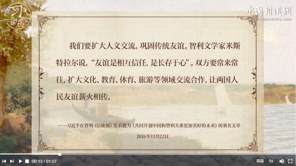 習近平主席在外事活動期間曾多次引用外國名言諺語,訴說友邦情誼。2016年11月22日,他在智利《信使報》發表署名文章,引用智利格言“友誼是相互信任,是長存于心”,希望兩國人民友誼薪火相傳。此句出自何人之口?有何涵義?看動畫,漲知識。