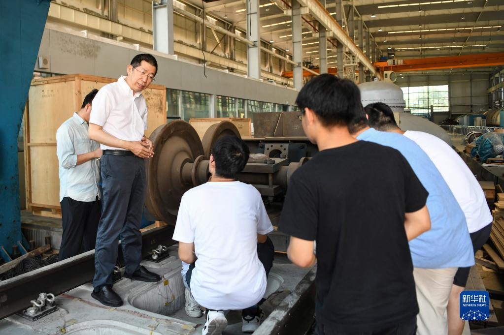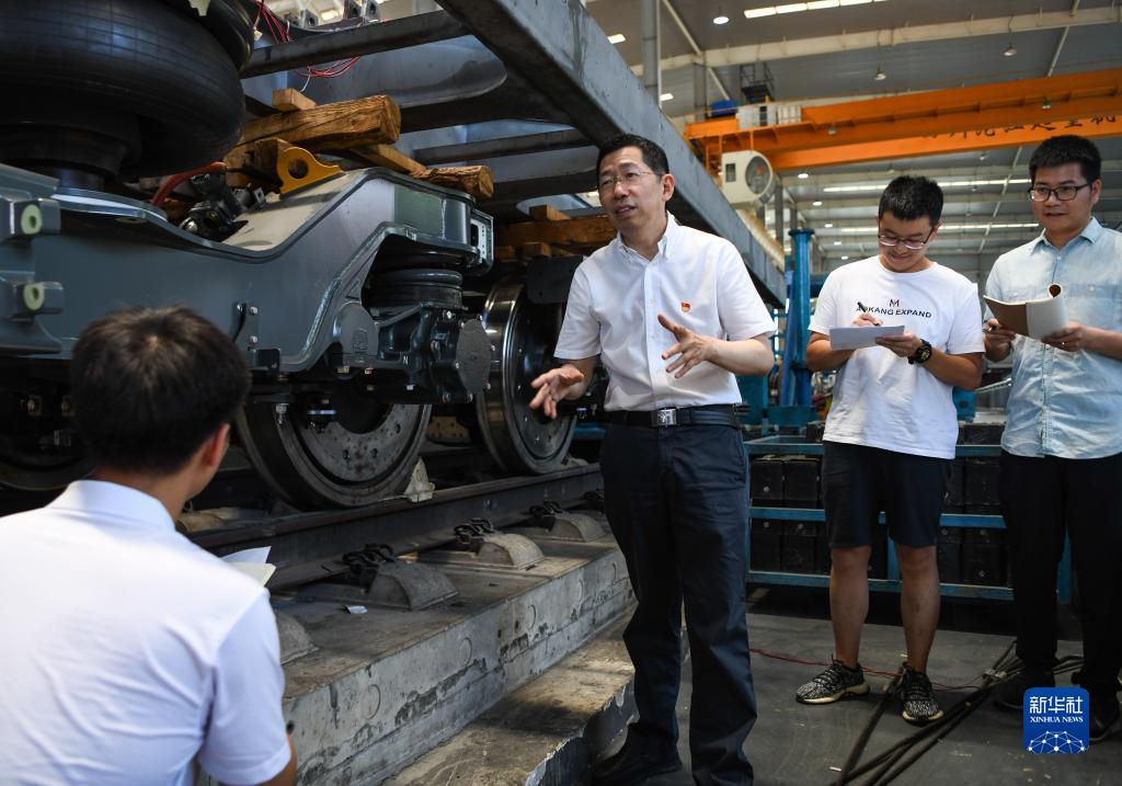 6月29日,在西南交通大學牽引動力國家重點實驗室,翟婉明(左二)在指導學生。 新華社記者 王曦 攝