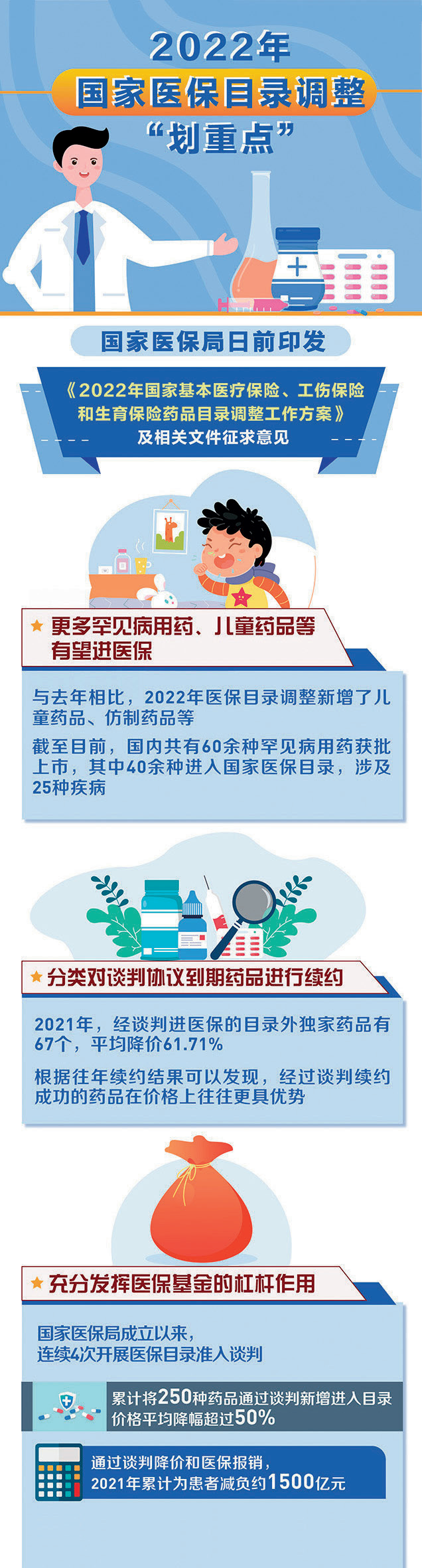 群眾醫藥負擔歷史性下降,國家集中帶量采購6批234種藥品、平均降價53%,集采2批耗材、平均降價超80%,累計降低藥耗負擔超5000億元。