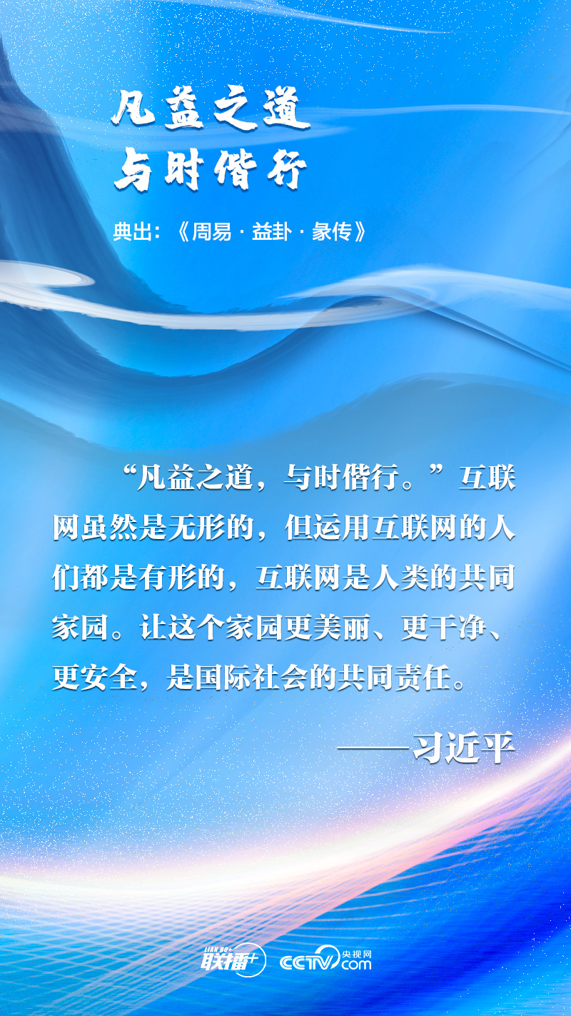 聯播+“網絡空間是人類共同的活動空間,網絡空間前途命運應由世界各國共同掌握。各國應該加強溝通、擴大共識、深化合作,共同構建網絡空間命運共同體。”