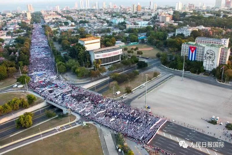 5月1日,古巴民眾在哈瓦那參加“五一”國際勞動節集會游行。古巴多地5月1日舉行“五一”國際勞動節集會游行,上百萬民眾走上街頭,反對美國對古封鎖,表達愛國情感,并向古巴醫療工作者和科研人員致敬。新華社發