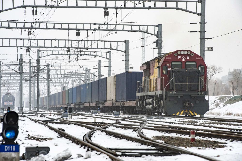 中歐班列(烏魯木齊)集結(jié)中心一角。