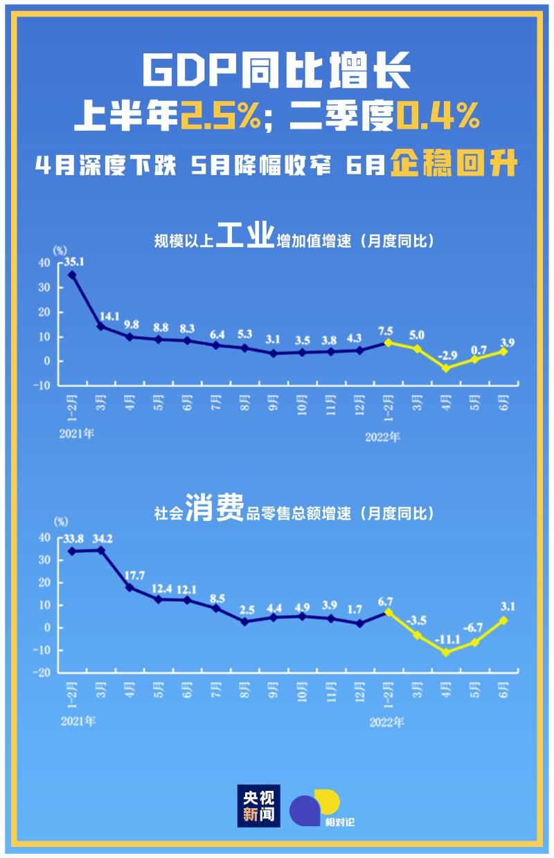 7月15日國家統(tǒng)計局發(fā)布中國經(jīng)濟半年報當(dāng)天,經(jīng)濟學(xué)家、上海財經(jīng)大學(xué)校長劉元春在央視新聞《相對論·大國季報》節(jié)目中提及以上兩組數(shù)據(jù)。他認為,相較于2020年疫情的沖擊,這一輪經(jīng)濟恢復(fù)的速度更快,說明我國正在疫情應(yīng)對和經(jīng)濟復(fù)蘇方面積累更多的經(jīng)驗。與此同時,劉元春和國家統(tǒng)計局綜合司一級巡視員王文波也都在節(jié)目中強調(diào),要進一步統(tǒng)籌好疫情防控和經(jīng)濟社會發(fā)展,做好一系列穩(wěn)增長政策的銜接。