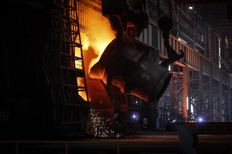 遼寧省鞍山市鞍鋼集團鞍鋼股份煉鋼總廠三分廠生產車間(2021年4月20日攝)。