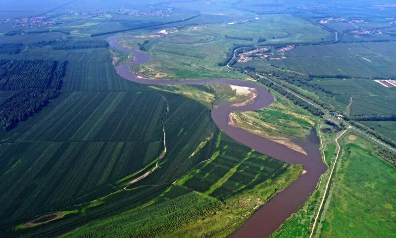 遼寧省鐵嶺市福德店遼河干流起點風光(2021年8月23日攝,無人機照片)。
