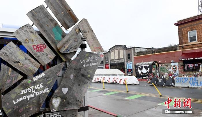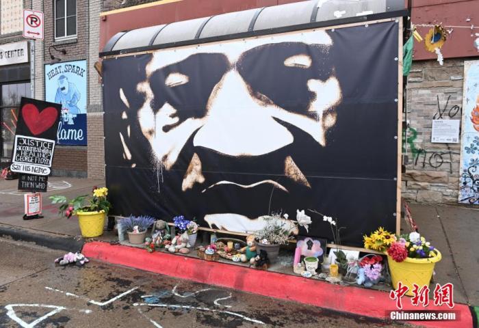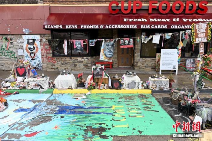 圖為弗洛伊德遭警察“跪壓”的事發地,如今由民間自發形成了一片紀念園地。