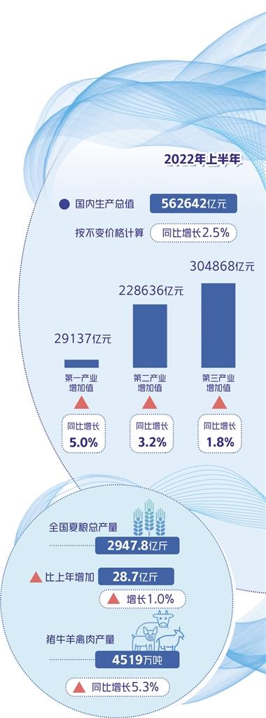 今年上半年,國際環(huán)境更趨復(fù)雜嚴峻,國內(nèi)疫情多發(fā)散發(fā),超預(yù)期突發(fā)因素給經(jīng)濟運行帶來嚴重沖擊。各地區(qū)各部門加大宏觀政策調(diào)節(jié)力度,有效實施穩(wěn)經(jīng)濟一攬子政策措施,二季度經(jīng)濟頂住壓力實現(xiàn)正增長,夏糧再獲豐收,工業(yè)生產(chǎn)企穩(wěn)回升,能源生產(chǎn)穩(wěn)定增長,服務(wù)業(yè)逐步恢復(fù),高質(zhì)量發(fā)展態(tài)勢持續(xù)。