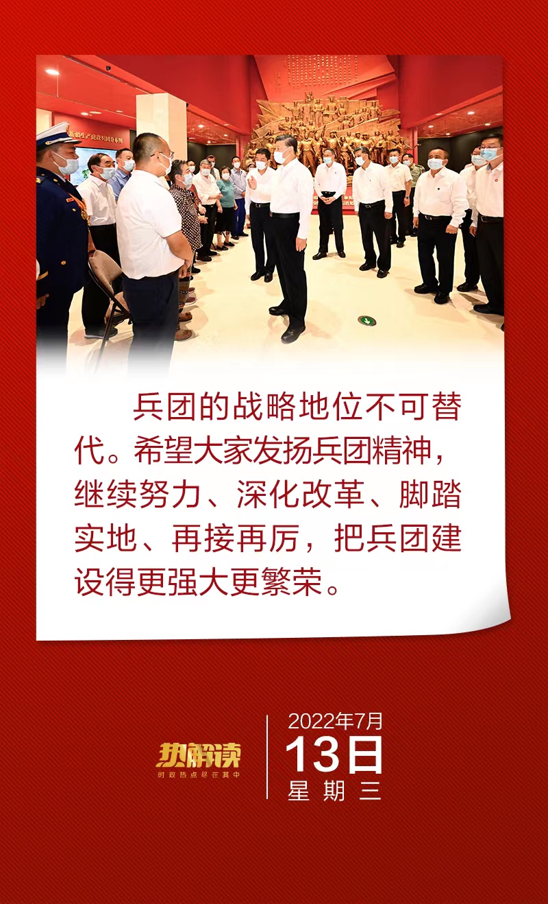 7月13日下午,正在新疆考察的習(xí)近平總書記來到新疆生產(chǎn)建設(shè)兵團(tuán)八師石河子市,走進(jìn)位于城市一隅的新疆兵團(tuán)軍墾博物館。在這里,總書記重點(diǎn)了解新疆生產(chǎn)建設(shè)兵團(tuán)屯墾戍邊的歷史。