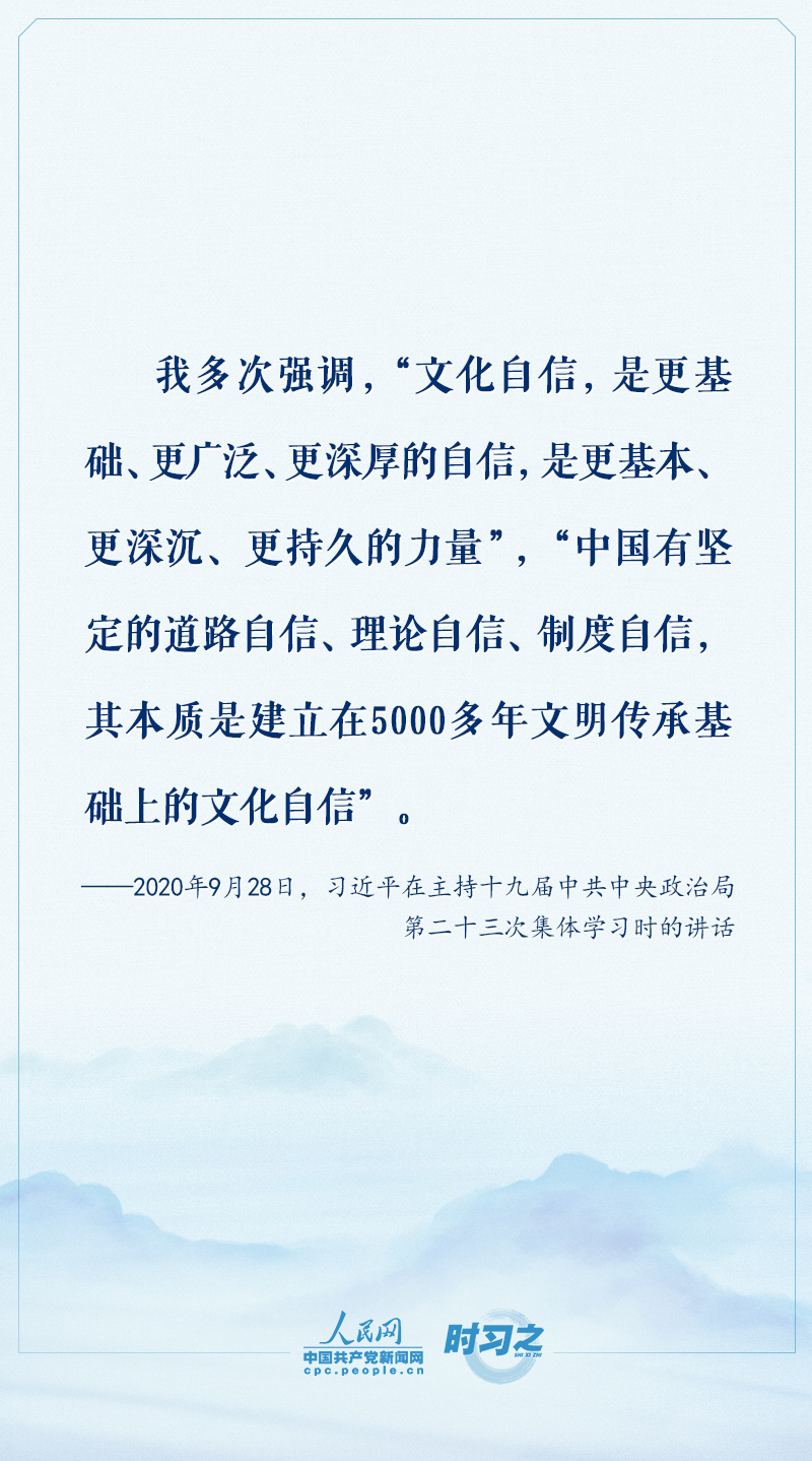 習近平總書記在主持中共中央政治局第三十九次集體學習時強調,“推動全黨全社會增強歷史自覺、堅定文化自信,堅定不移走中國特色社會主義道路,為全面建設社會主義現代化國家、實現中華民族偉大復興而團結奮斗。”源浚者流長,根深者葉茂。習近平曾在多個場合反復強調增強歷史自覺、堅定文化自信,為實現中華民族偉大復興注入強大的精神動力。
