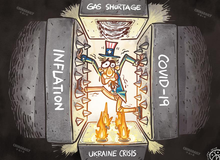 美國正面臨疫情、通脹、烏克蘭問題和油氣短缺四重巨壓。(來源:中國日報 蔡朦 英文《中國日報》2022年7月20日8版) (版權所有 未經授權不得轉載)