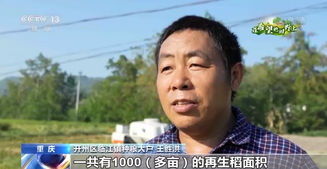 開州區臨江鎮種糧大戶 王勝洪:一共有1000多畝的再生稻面積,也就是一共計劃20多天收完。一天三臺機器,計劃每天收割50到60畝。