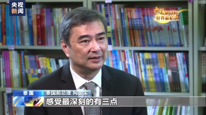 泰國前總理 阿披實:我對習近平主席治國理政理念感受最深刻的有三點,一是以科學為依據制定發展目標,這意味著任何行動都需要有充分的理論支持。二是在決定國家發展方向的時候,堅守初心,無論世界風云如何變化,堅持政治理想,與時俱進,適時做出調整。三是在制定國家發展規劃時,堅持人民至上,保障國家治理真正符合人民利益。