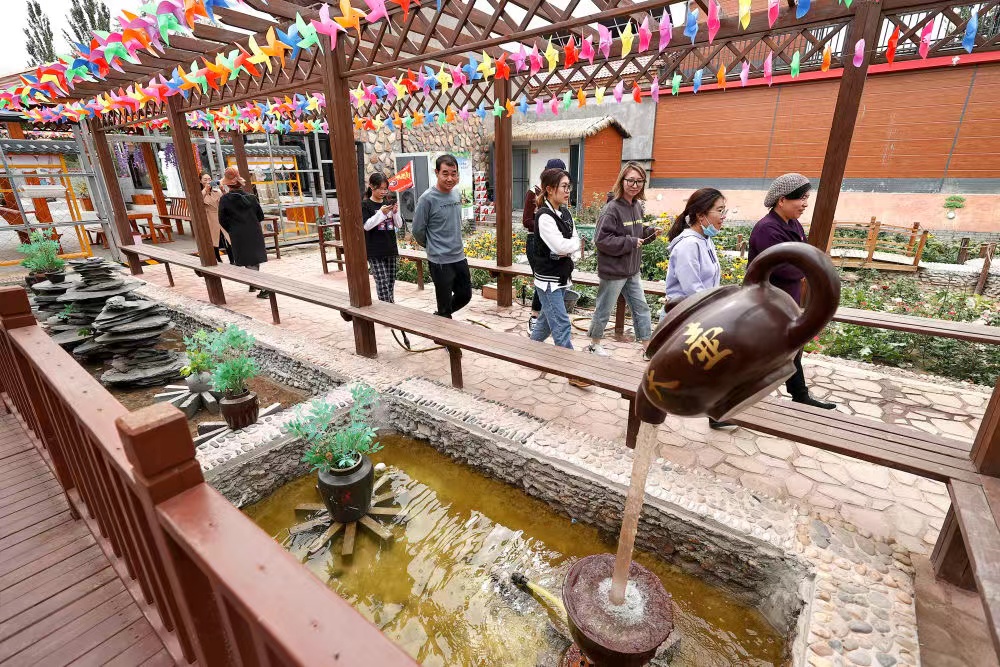 國慶節假期,游客在永新村農家樂“共享庭院”中漫步。新華社記者馮開華 攝