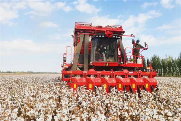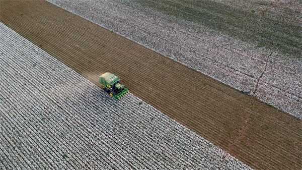 在新疆塔城地區(qū)烏蘇市棉田中,最新款的國(guó)產(chǎn)采棉機(jī)大顯身手,每隔30多分鐘便能“吐出”一個(gè)2噸左右的巨大“金蛋”;在阿克蘇地區(qū)沙雅縣,190余萬(wàn)畝棉花喜迎豐收,棉田中采棉機(jī)來(lái)回穿梭作業(yè),確保朵朵新棉及時(shí)歸倉(cāng);在新疆生產(chǎn)建設(shè)兵團(tuán)第五師,75萬(wàn)畝棉花采收全程實(shí)現(xiàn)機(jī)械化。