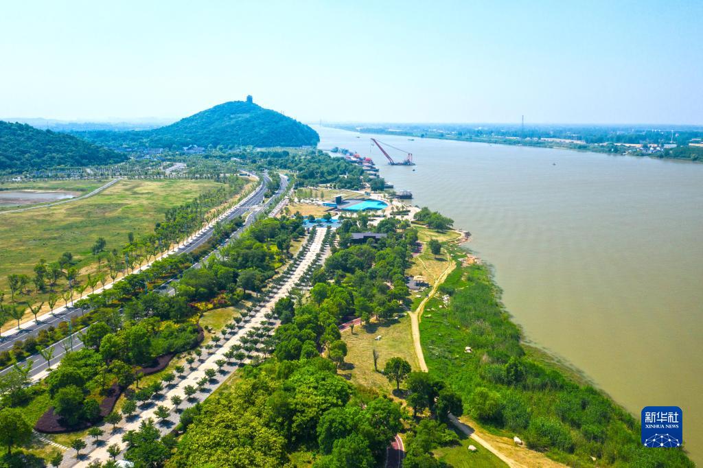 安徽省馬鞍山市長(zhǎng)江岸線(xiàn)景觀帶(2022年5月17日攝,無(wú)人機(jī)照片)。新華社發(fā)