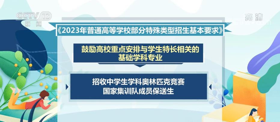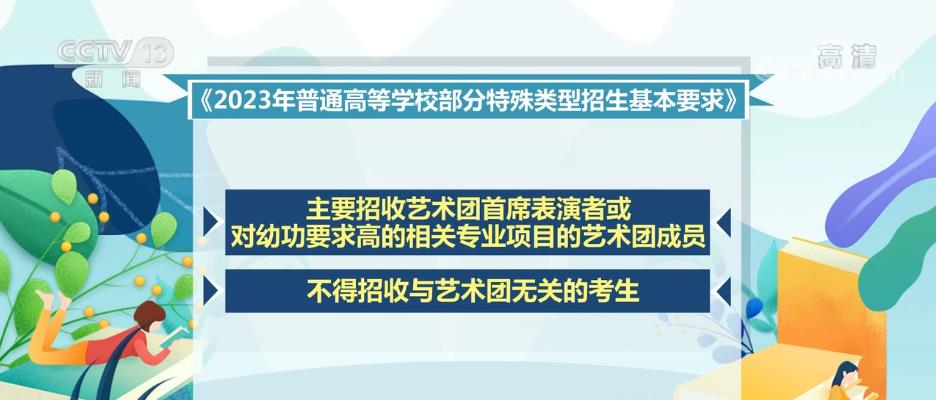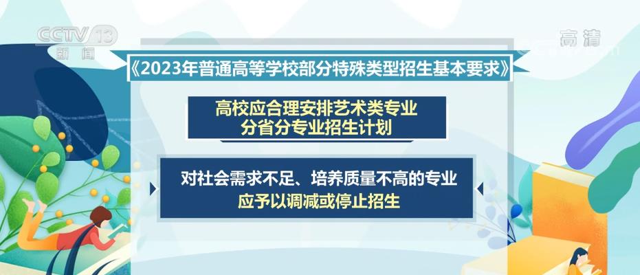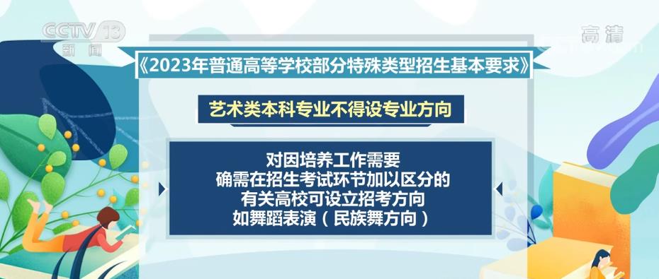 教育部下發的《2023年普通高等學校部分特殊類型招生基本要求》對高校藝術類專業、高水平藝術團、高水平運動隊、保送生等特殊類型招生工作提出了具體要求。