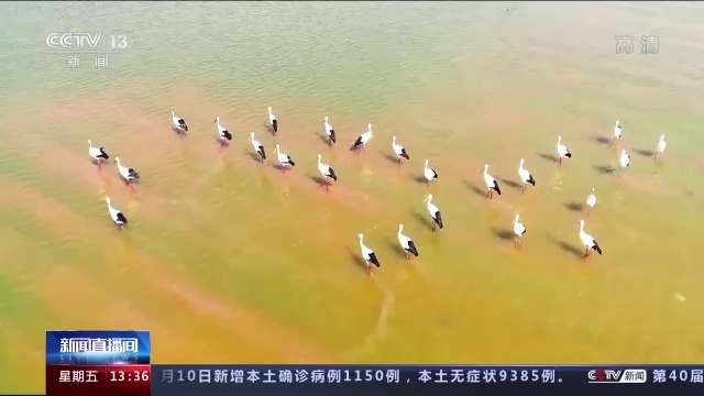 補水,更需要網格化精準管理。保護區根據動植物生長的環境,將濕地劃分為49個區域,每個區域將實現按需補水、分區補水、科學補水。得益于生態補水,今年繁殖季,魚蝦貝類格外豐富,東方白鸛的繁殖巢數從去年的120巢324只,增加到152巢470只。而為了實時掌握每片濕地的鳥類活動,今年黃河三角洲新搭建了鳥類動態實時監測系統。