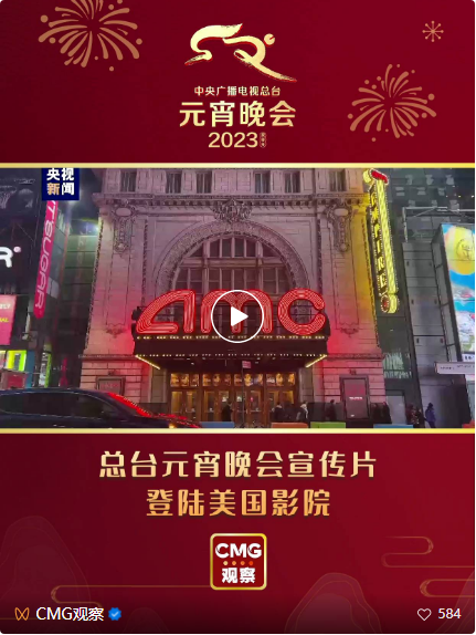 從當地時間2月4日起,總臺元宵晚會宣傳片在洛杉磯、紐約、華盛頓、舊金山、芝加哥電影院上線,于影片放映前、購票及休息大廳電子屏循環播放。