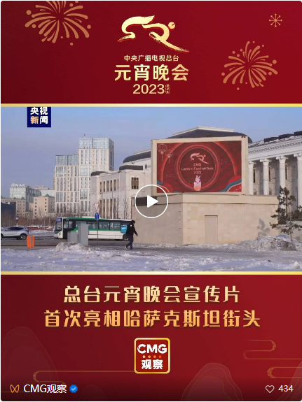 據哈薩克斯坦合作伙伴介紹,在此期間,總臺元宵晚會宣傳片將累計播出近一萬次,觸達受眾數十萬人。總臺元宵晚會宣傳片首次亮相哈薩克斯坦,有利于增進中亞地區民眾對中國傳統節日和文化的了解,促進民心相通。