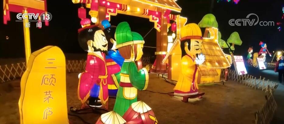 臥龍崗景區工作人員 冀柯:設置了300多組彩燈,把三國故事和我們的民俗文化、非遺節目串聯在一起了。