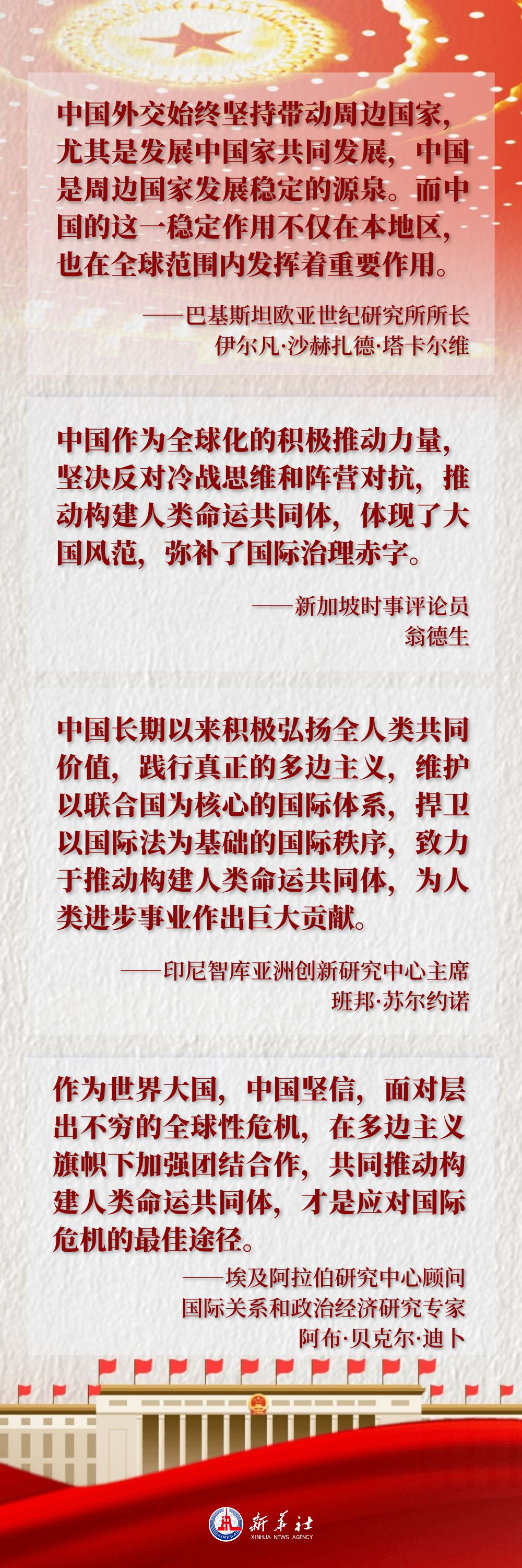 “中國長期以來積極弘揚全人類共同價值,踐行真正的多邊主義,維護以聯(lián)合國為核心的國際體系,捍衛(wèi)以國際法為基礎的國際秩序,致力于推動構建人類命運共同體,為人類進步事業(yè)作出巨大貢獻。”印尼智庫亞洲創(chuàng)新研究中心主席班邦·蘇爾約諾表示。