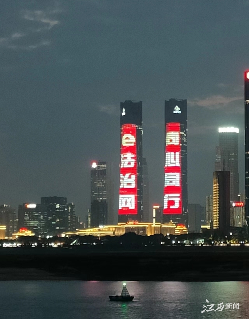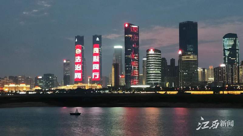江西新聞客戶端訊(全媒體記者王靜儀)華燈初上,燈光璀璨。6月13日晚,2023年“全國網絡普法行·江西站”活動采訪團登上滕王閣游輪,共同欣賞南昌一江兩岸網絡普法主題燈光秀。據悉,6月9日至17日,南昌一江兩岸燈光秀在19時35分、19時45分、20時20分和21時25分四個時間段滾動播放本次活動的宣傳標語“e法治網 同心同行”,推動網絡普法入眼入腦;12日至14日,則在每日19時50分循環播放全國“網絡普法行·江西站”活動宣傳片,助力法律法規的宣傳和普及。