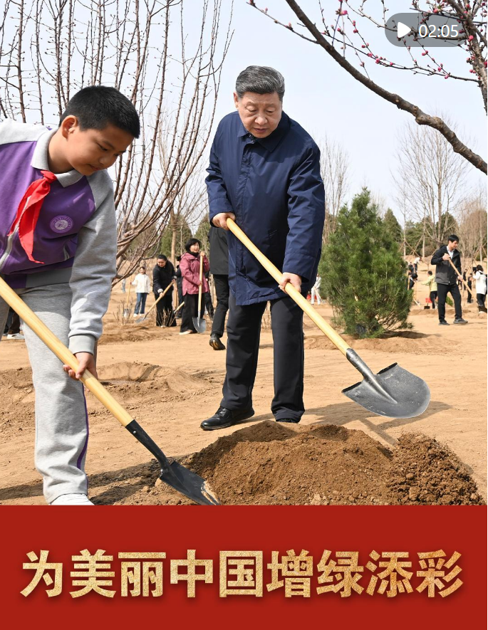 3月30日,習近平總書記在參加首都義務植樹活動時,接連種下油松、北京牡丹、榆葉梅、杜仲、元寶楓等多棵樹苗。不同樹種繪就四季斑斕,為山川大地增添錦繡。