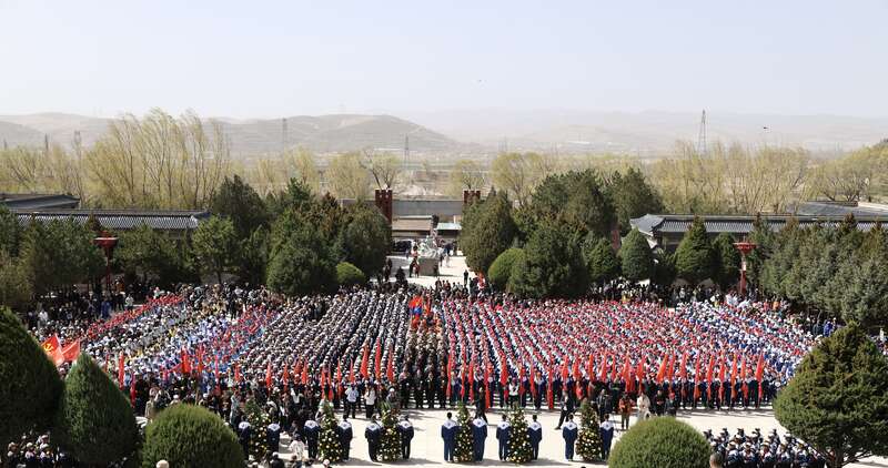 4月3日上午11時許,2400多名大中小學生,齊聚位于寧夏固原市彭陽縣古城鎮的任山河烈士陵園內,祭奠英烈。中青報·中青網記者 焦敏龍/攝