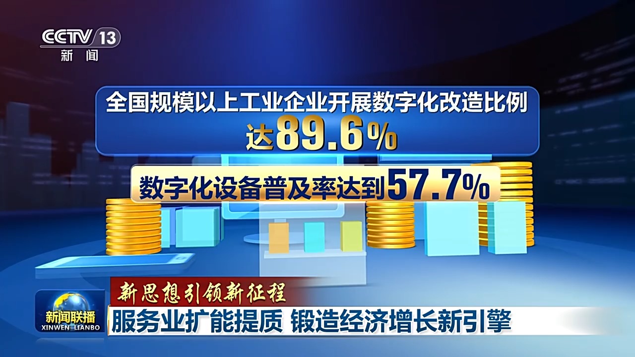 生產性服務業加速向專業化和價值鏈高端延伸,正在成為帶動產業轉型升級的重要力量。今天,以人工智能等為代表的新一代信息技術加速突破應用,我國工業互聯網實現41個工業大類全覆蓋。從“賣產品”到提供全鏈條服務,目前,全國規模以上工業企業開展數字化改造比例達89.6%,數字化設備普及率達到57.7%。
