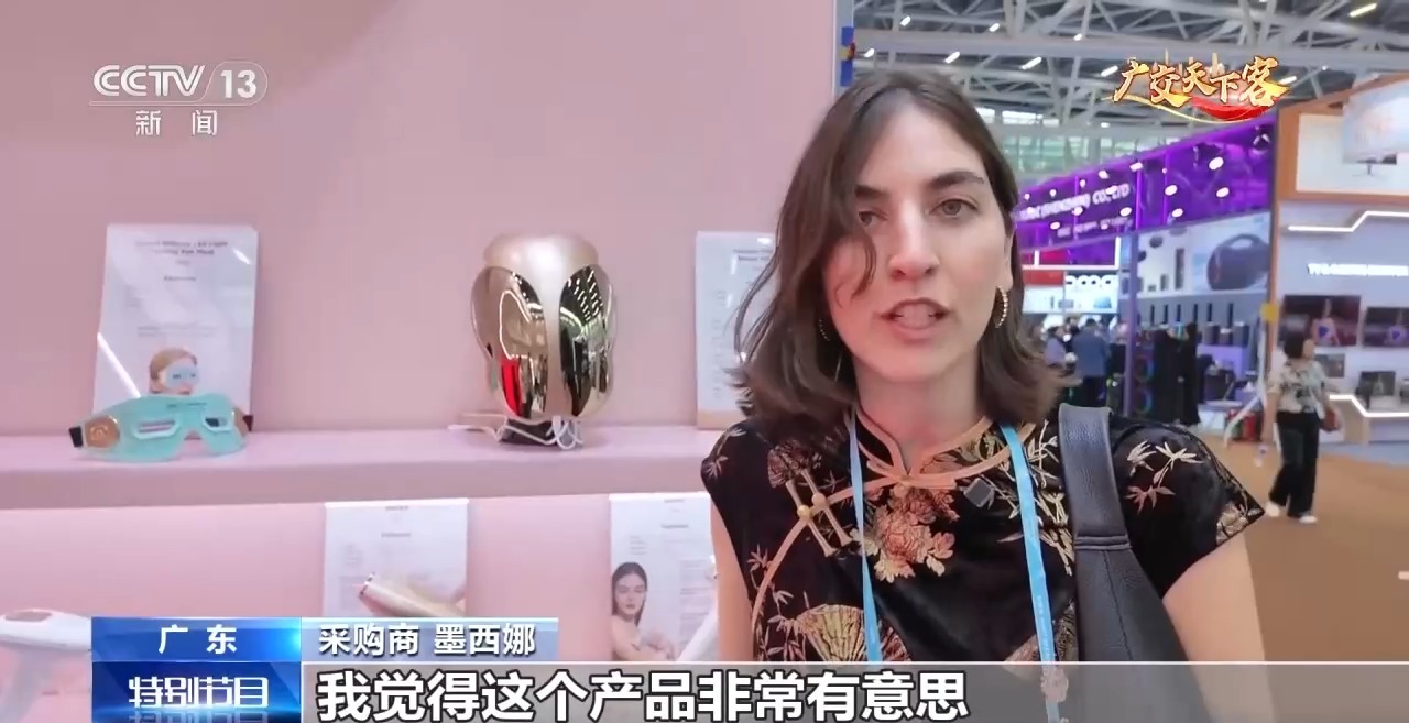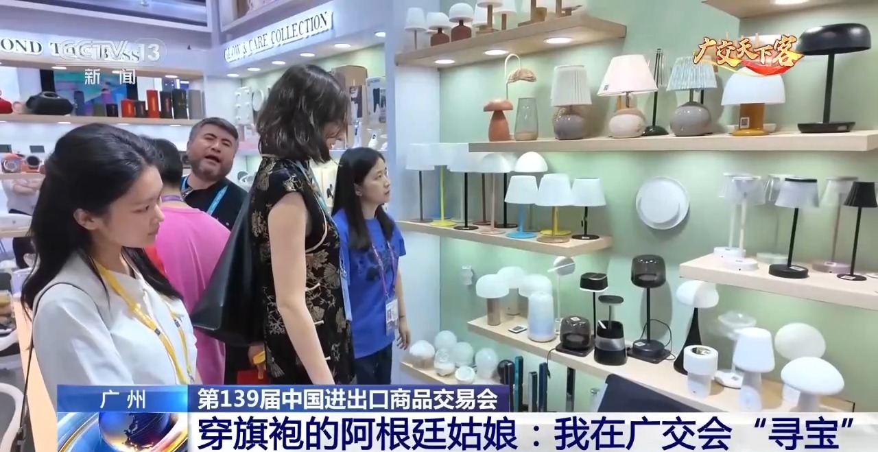 還沒從美容儀帶來的驚喜中平復,墨西娜又在燈具展位前駐足,仔細詢問價格、產品認證以及當地銷售情況。雖然這只是她第二次參加廣交會,卻已是十分嫻熟的“尋寶行家”。得知不少產品尚未進入阿根廷市場,她更是如獲至寶,當即與參展商洽談價格,瞄準這片有待開拓的空白市場。