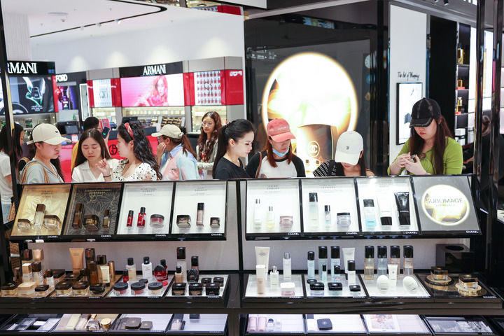 2026年3月25日,顧客在海口日月廣場免稅店選購商品。新華社記者 張麗蕓 攝