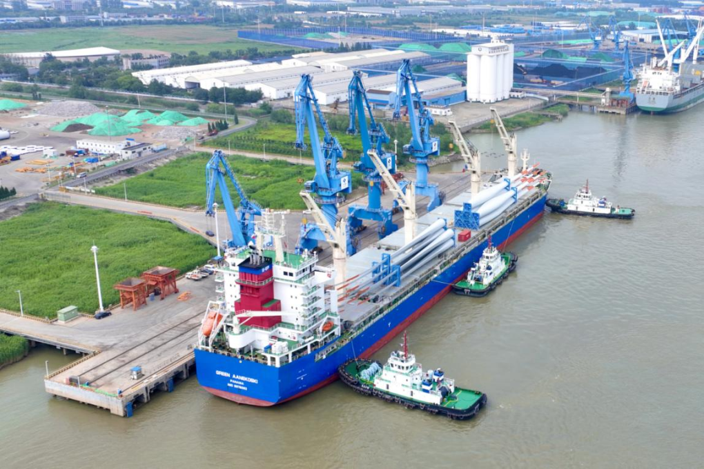 揚州港,地處長江與京杭大運河黃金交匯點,既是內河航運的樞紐,也是河江海聯運的門戶。這座港口的崛起,正是長三角港產融合發展的生動縮影。依托周邊新能源產業集群,揚州港已成為國內領先的風電設備綜合出口基地,成為我國綠色能源“走出去”的重要通道。