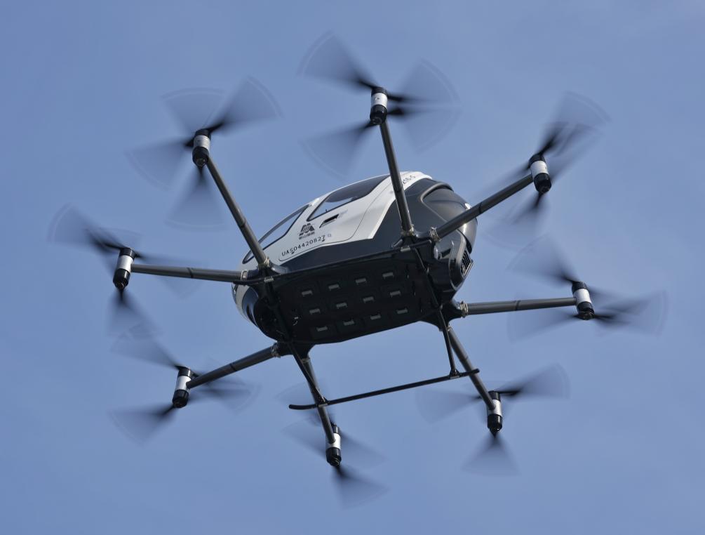 2月13日,成都市主城區(qū)首次進(jìn)行eVTOL載人驗(yàn)證飛行。 新華社記者劉坤 攝