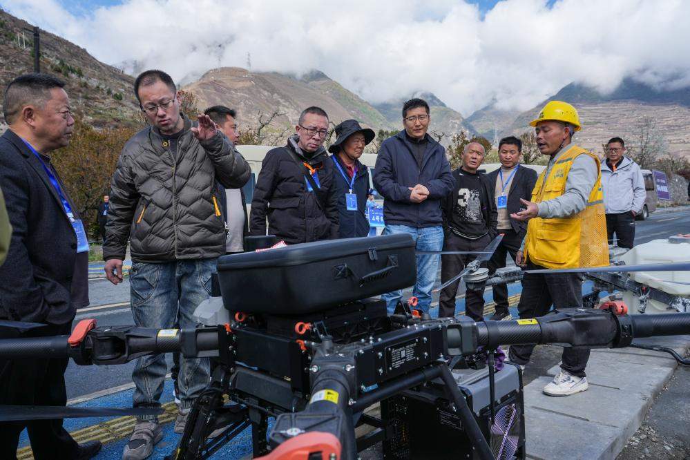 3月31日,在四川茂縣“茂縣李”標(biāo)準(zhǔn)化種植基地,2026“茂縣李”產(chǎn)業(yè)發(fā)展大會(huì)參會(huì)專(zhuān)家和客商了解無(wú)人機(jī)植保情況。新華社記者王曦 攝