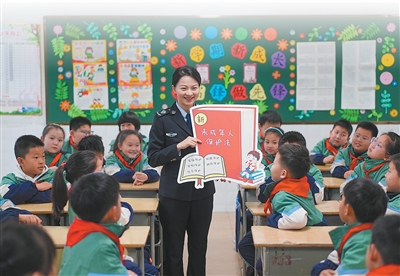 浙江金華市婺城區(qū)人民檢察院檢察官在轄區(qū)小學(xué)開展法治宣傳教育。