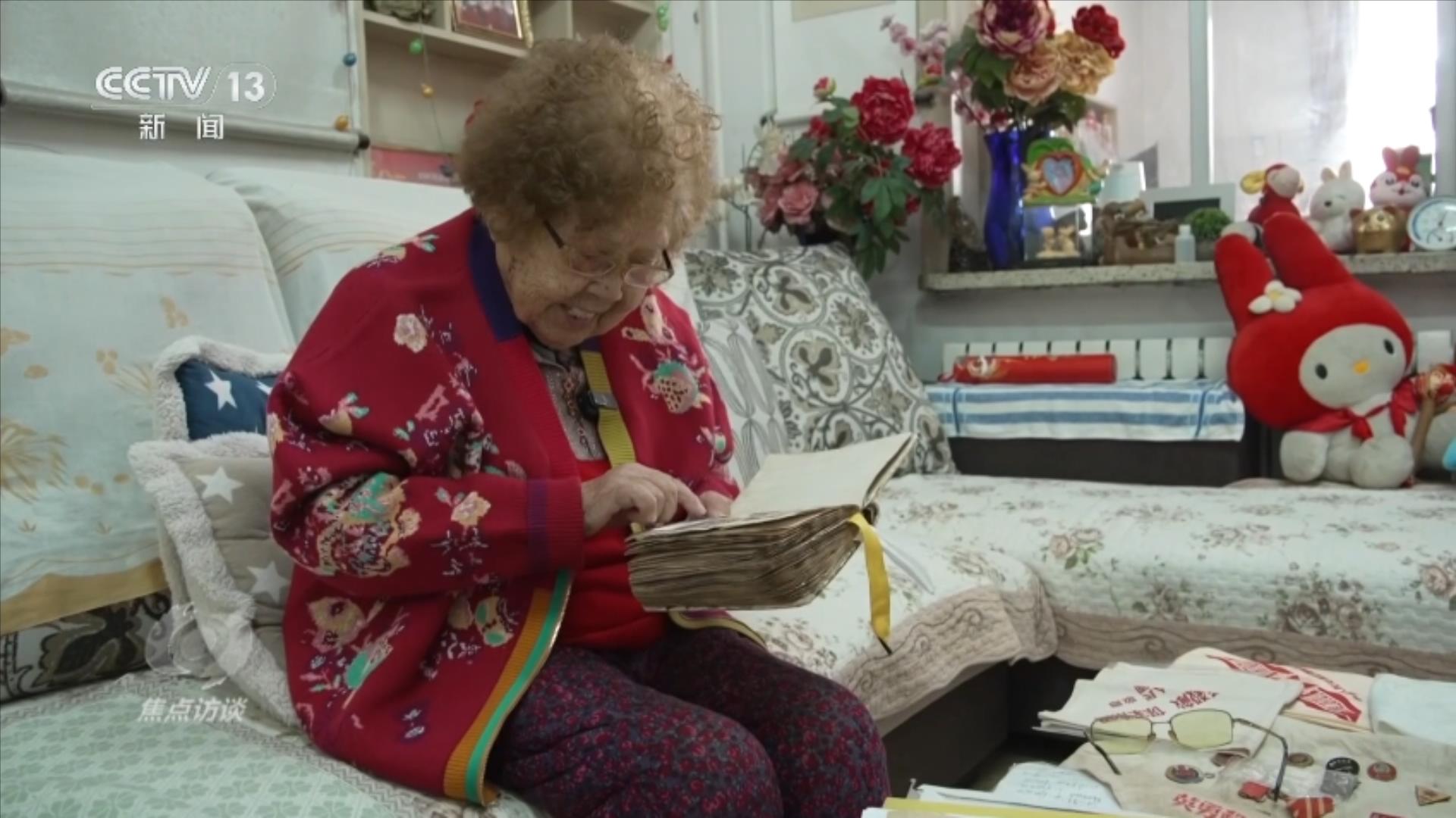 烽火歲月讓老人刻骨銘心,70多年來,她一直珍藏著一批從朝鮮戰場上帶回的老物件。一本泛黃的筆記本是她同在戰場上奮勇抗敵的愛人王千祥繳獲的戰利品。