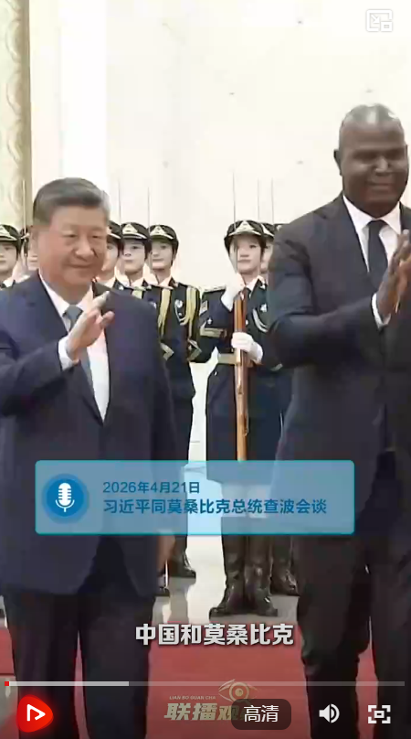 4月21日,習近平主席同來華進行國事訪問的莫桑比克總統查波舉行會談。會談中,習主席提及鄭和船隊600多年前到訪莫桑比克沿岸的故事。