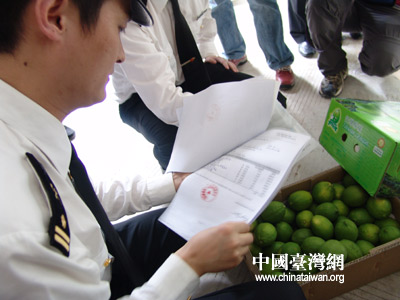 據了解,這批水果共有8個品種,包括500箱6000公斤柳橙、31箱372公斤哈密瓜、2箱20公斤檸檬以及蓮霧648公斤、桃2000公斤、菠蘿810公斤、番石榴3010公斤、番荔枝1506公斤,總計1497箱14366公斤水果。另據介紹,至今年五月一號,廈門口岸已進口45批15個品種的臺灣水果,總重298噸,貨值26.8萬美元。
