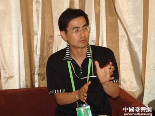 全國(guó)臺(tái)聯(lián)新聞處處長(zhǎng)接受本網(wǎng)記者采訪(攝/鐘寶華)