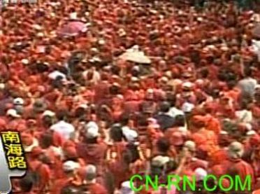 據(jù)報道,上午10點鐘,“紅衫軍”開始移動圍攻臺當(dāng)局“總統(tǒng)府”,參加的群眾成了紅色人龍,往館前路蔓延,畫面相當(dāng)壯觀;在施明德的帶隊下,“紅衫軍”一路走一路高喊口號“陳水扁下臺!”(郭強)
