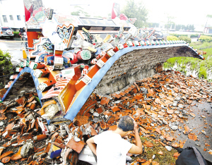 資料圖:9月7日,宜蘭發生6.3級地震,羅東鎮40年牌樓倒塌。