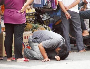 陳某選定昨天上午履行約定,清晨7時就由家人陪伴跪在菜市場門口,剛開始家人都圍在身旁,還引起張男不滿,認為誠意不足,陳家人只好站到旁邊,讓陳面對眾人異樣的眼光。 (云鵬)