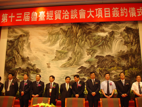 中國臺灣網9月20日濰坊消息 “第十三屆魯臺經貿洽談會”大項目簽約儀式于昨日下午在濰坊舉行。山東省直有關部門、有關市政府負責人及臺灣女企業家協會理事長馬愛珍等簽約雙方代表參加了此次儀式。