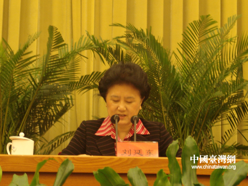 全國政協(xié)副主席、中央統(tǒng)戰(zhàn)部部長(zhǎng)、中國和平統(tǒng)一促進(jìn)會(huì)執(zhí)行副會(huì)長(zhǎng)劉延?xùn)|作工作報(bào)告。