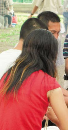 臺灣游民愈來愈年輕,16歲的小玲(背對鏡頭長頭發者)與她左邊19歲的阿賢,兩人在游民群中顯得特別醒目。(圖:聯合報)